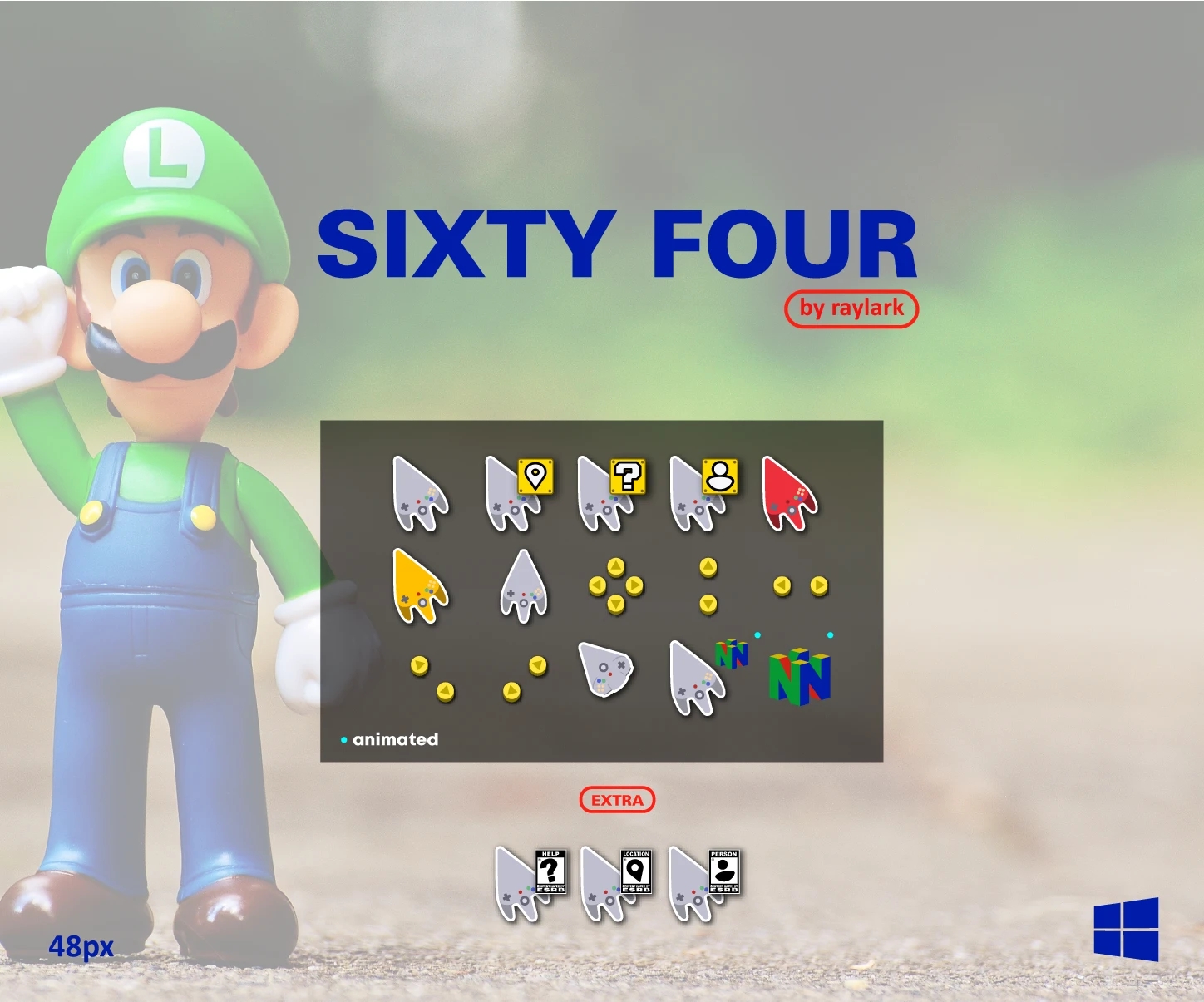你闻到了吗?…那股怀旧之情!?N64手柄样式的鼠标指针,N64手柄堪称游戏史上最重要的输入设备,它有3个堪称划时代的设计:类比摇杆,扳机按键,震动包。N64上诞生了塞尔达传说:时之笛和超级马里奥64等超级大作。