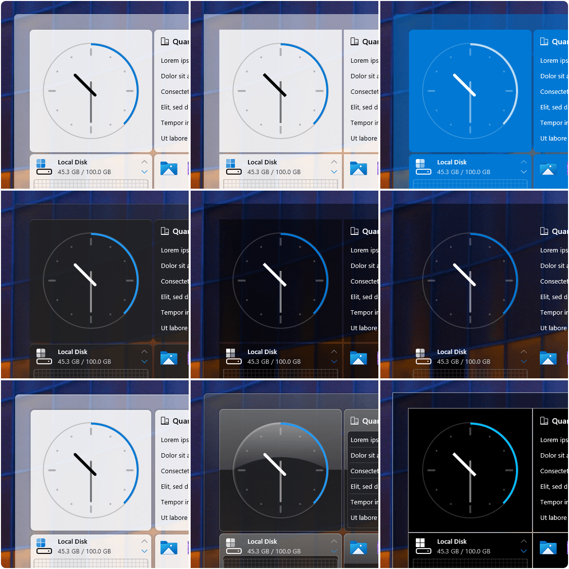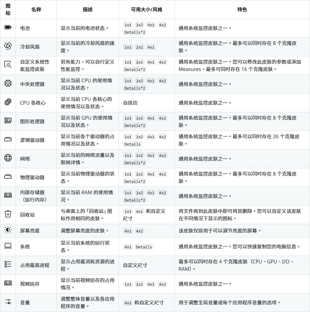 这些皮肤依靠系统监控软件(例如 AIDA 或 HWiNFO)来提供有关系统资源使用情况的统一且详细的报告。