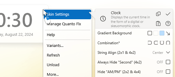 无从下手?从 Quanto Flx 提供的预设主题着手吧!在设置时,Quanto Flx 可以提供即时预览,而不需要在设定完毕之后刷新皮肤才能看到效果。