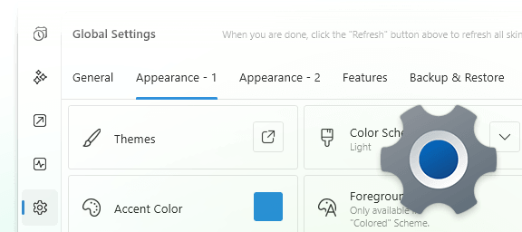 Quanto Flx 全局设置提供了丰富的参数,允许您调整外观的许多细节,例如字体的大小或粗细、面板位置微调、面板之间的间距、光照设定以及全局外观的圆角大小等。