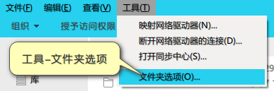 这个文件是隐藏文件,我们需要显示系统隐藏文件,打开此电脑,菜单 – 工具 – 文件夹选项(如果没菜单栏,请按键盘Alt键)