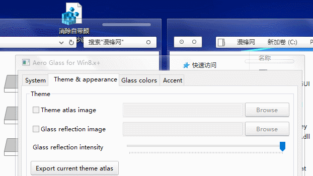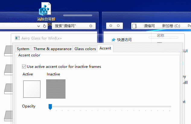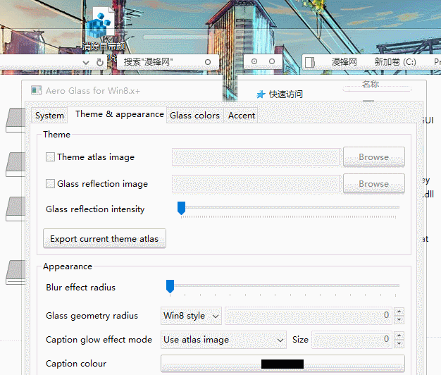 近日,有国外网友动手写了个简单的小工具“Aero Glass for Win8.1”,可以让Win10也拥有毛玻璃,效果还是不错的,而且非常灵活,不但可以设定透明度、颜色、光照方向,还能自定义底纹背景,甚至可以根据桌面背景自动计算最合适的颜色。